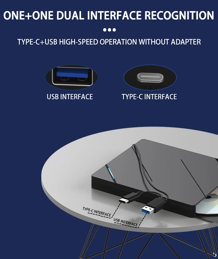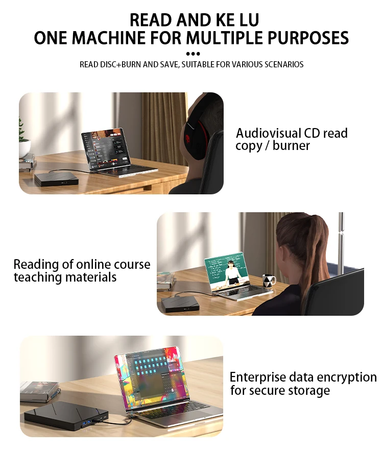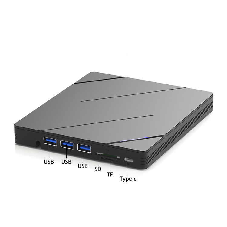 7 1 Multifunctional DVD Burner for Laptop 3 USB Ports TYPE-C Interface SD/TF Card Slots 8x/24x Speed 4MB Cache Hidden Data Cable