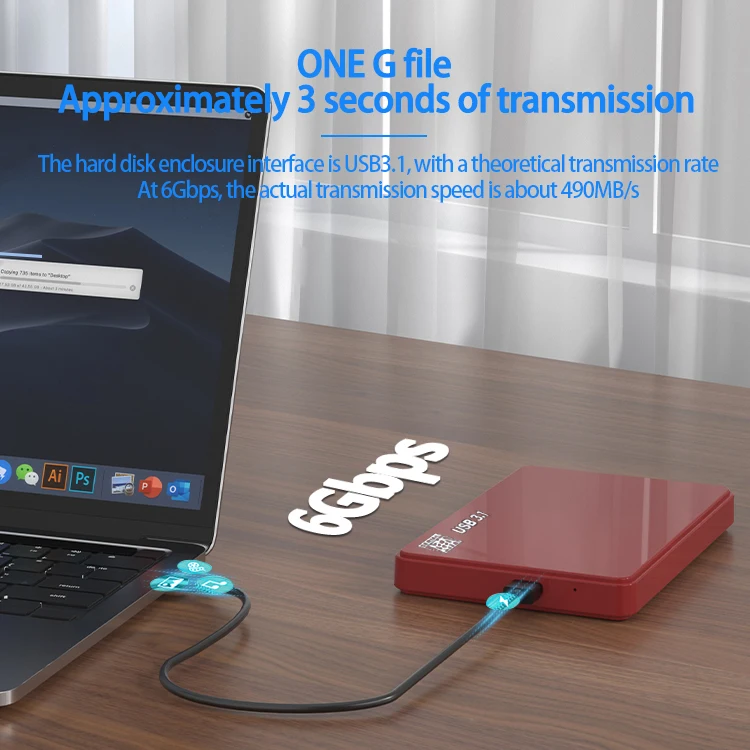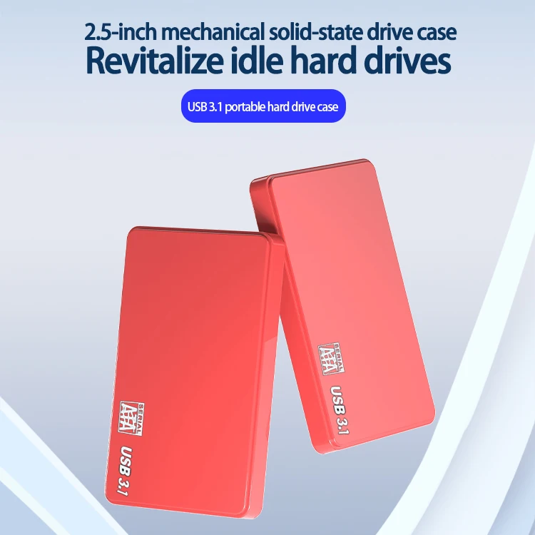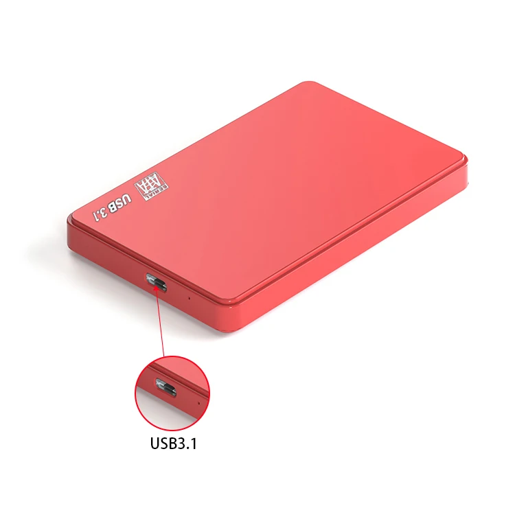 2.5 Inch Portable Laptop Hard Drive Case USB 3.1 Universal Solid State & Mechanical Storage Solution Red Plastic Glue