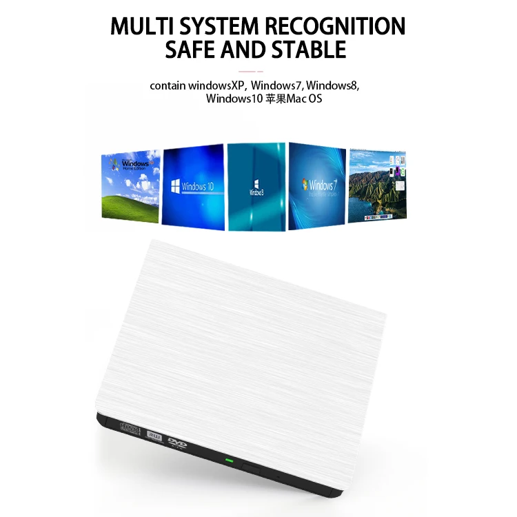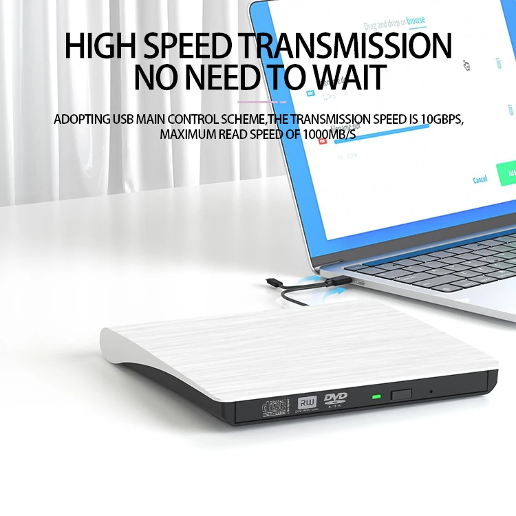 Ultra-Thin White USB External DVD Burner CD and DVD Disc Drives for Laptop Application