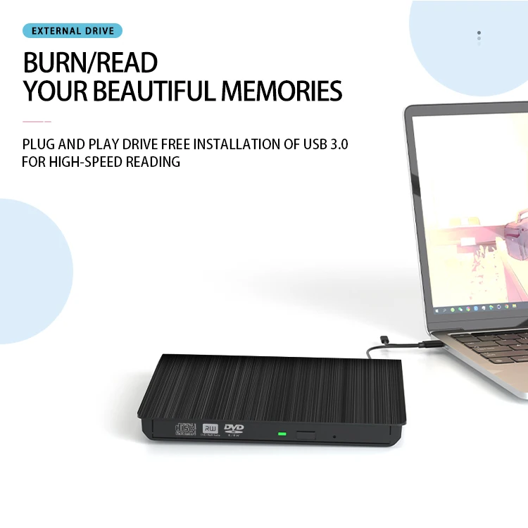 USB Mobile Computer External Optical Drive DVD Burner Laptop Application with Optical Disc Player and Reader Connection