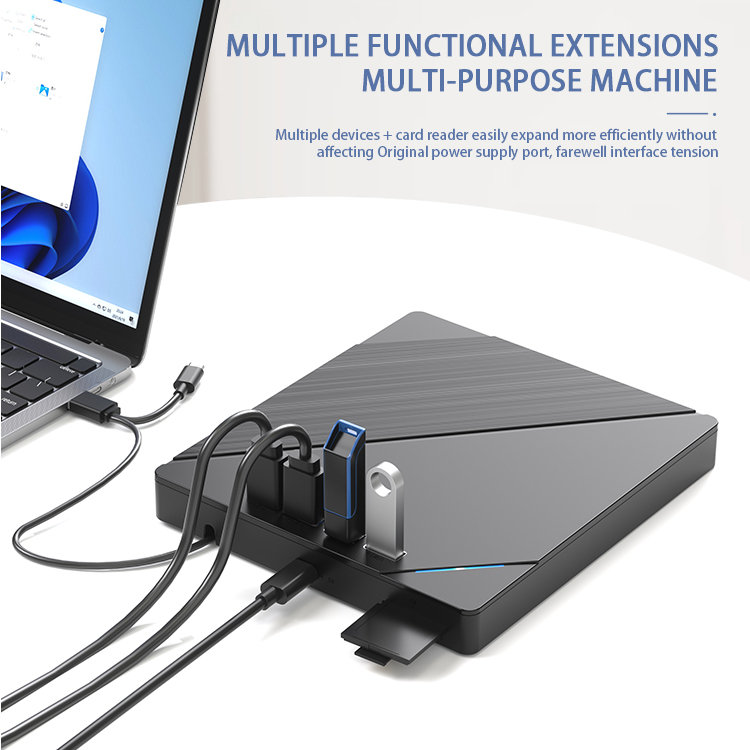 7 in 1 Multi-Function External Optical Drive Plug-in Card Expansion USB Type C DVD RW Burner with High Compatibility