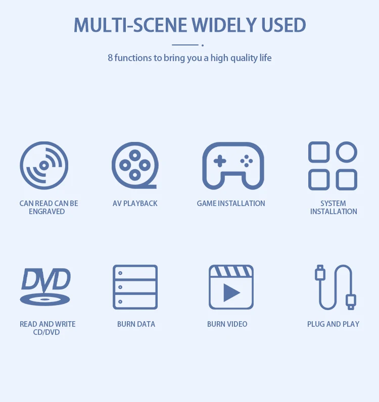 Multifunctional Blu Ray burner External BD RE Blu Ray Drive Supports 3D Movie Playback and Recording