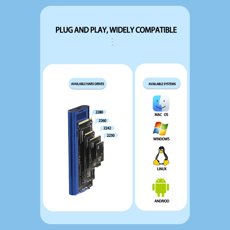 M. 2 NVME NGFF Aluminum Alloy Sky Blue Dual Protocol Solid State Drive Case Type C Portable Mobile Hard Drive Box