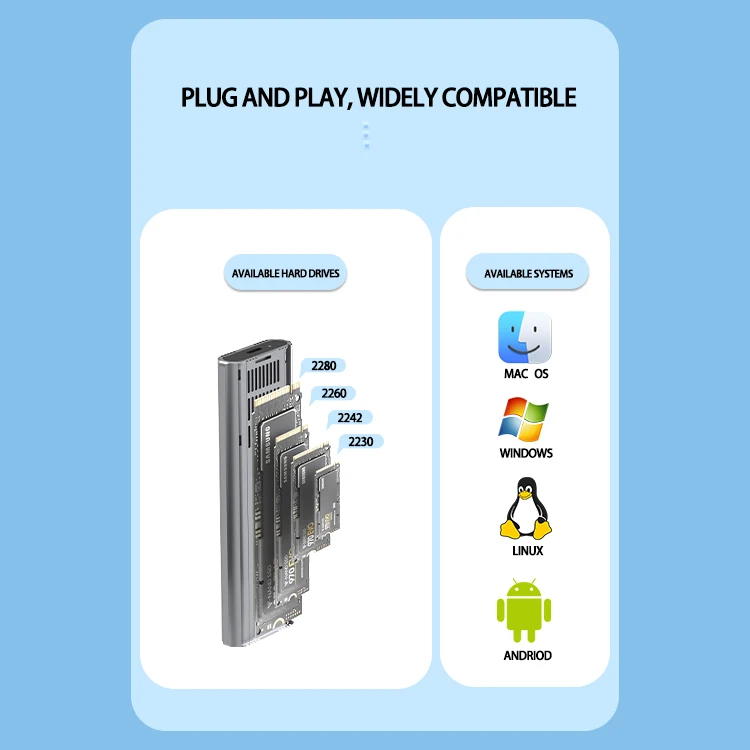 M. 2 Tool Free Installation of Mobile Hard Drive Box NGFF NVME Dual Protocol Solid State Drive Box